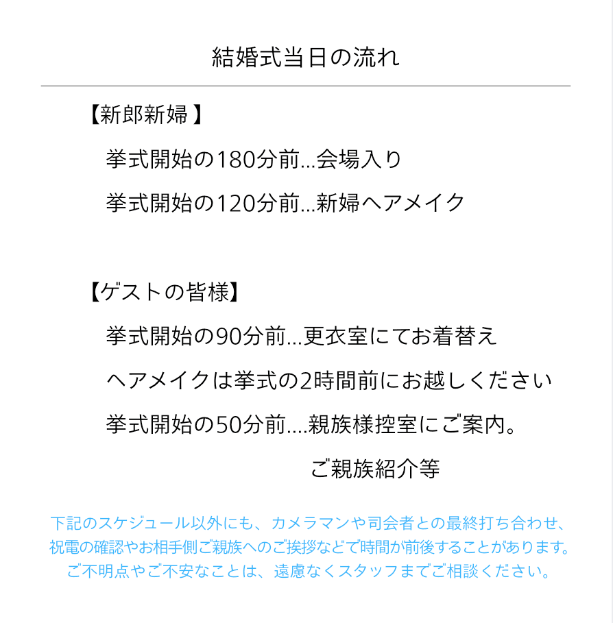 最短3週間で挙式可能。打ち合わせは1〜2回でスムーズに進行。オンライン対応や少人数向けのシンプル演出で負担を軽減し、専任プランナーがサポートいたします。